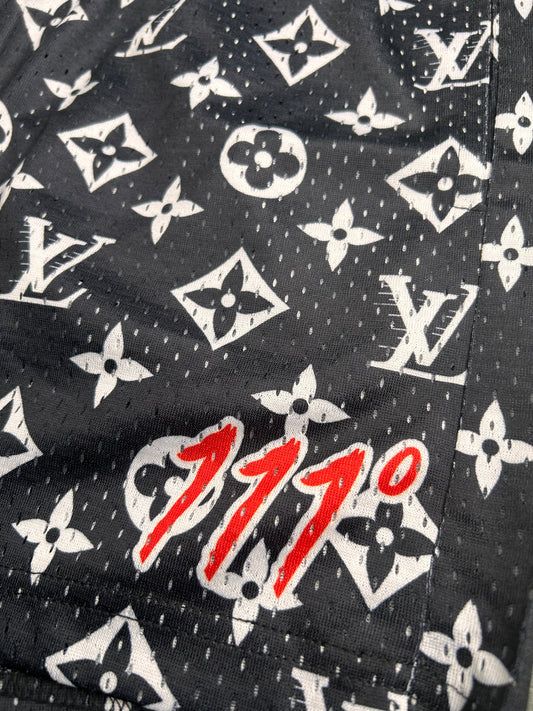 111° Designer Men's Black & White Monogram Mesh Shorts