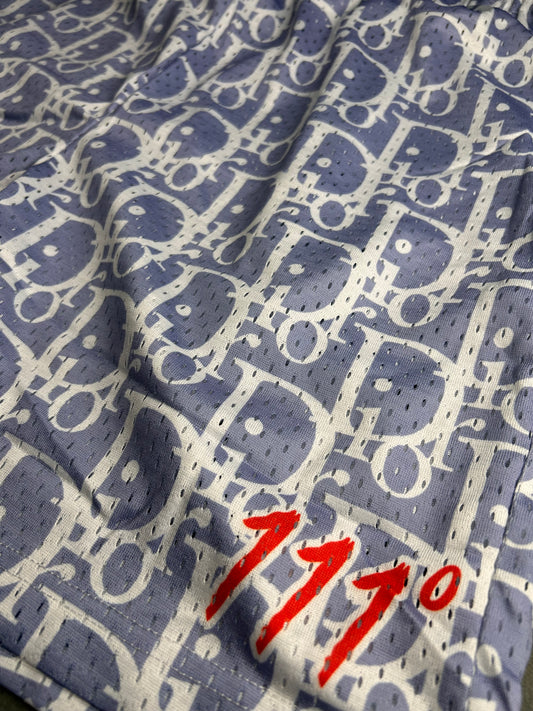 111° Men's Light Blue Designer Monogram Mesh Shorts