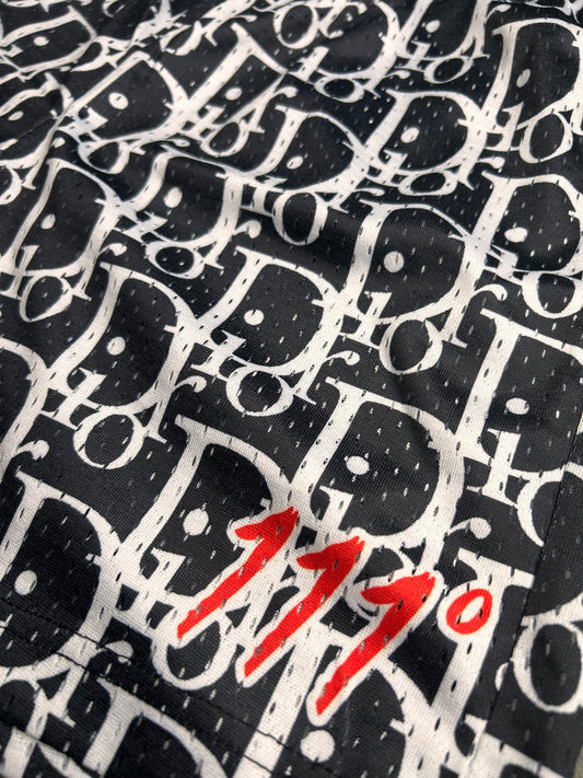 111° Designer Men's Black & White Monogram Mesh Shorts